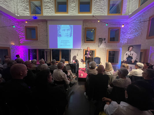 Vor vollen Rängen erlebten wir eine so unterhaltsame wie lehrreiche Vorleseshow von Historiker Michael van Orsouw über die berühmte Kaiserin Sisi und Ihre innige Beziehung zur Schweiz. Dazu gab es im kulinarischen Teil österreichische Spezialitäten von Griessnockersuppe zu Kaiserschmarren.